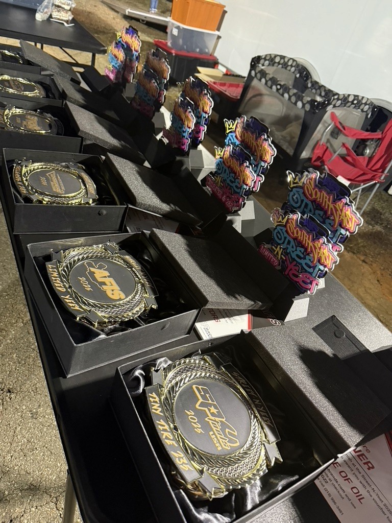 During the event, we were able to help with running tech lines, driver registration, serving food/drinks at the taco party night, running the staging lanes, managing time slips, and even updated the award chains/belts that had the wrong classes info.