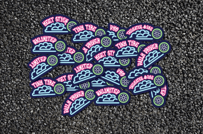 Miscellaneous Event Merch like: Cups, Waterproof Stickers, Car Numbers, Driver Bracelets, Hats, etc.
